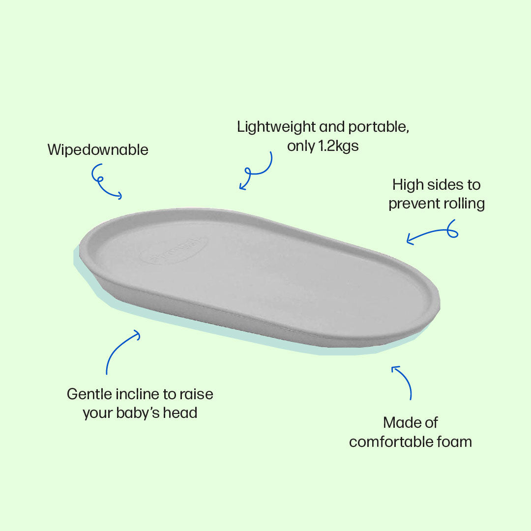 Miila Puffy Changing Mat features high sides to help prevent rolling and an angled base designed to relieve colic, providing comfort and safety for your baby. The warm-to-touch, waterproof surface is hygienic and easy to clean, eliminating the need for extra covers and reducing laundry. Lightweight and portable, it fits on changing tables, dressers, or can be used anywhere at home or while traveling. Made from non-toxic, baby-safe PU foam, it is PVC and BPA free and fully tested to EU standards, ensuring peace of mind for parents.