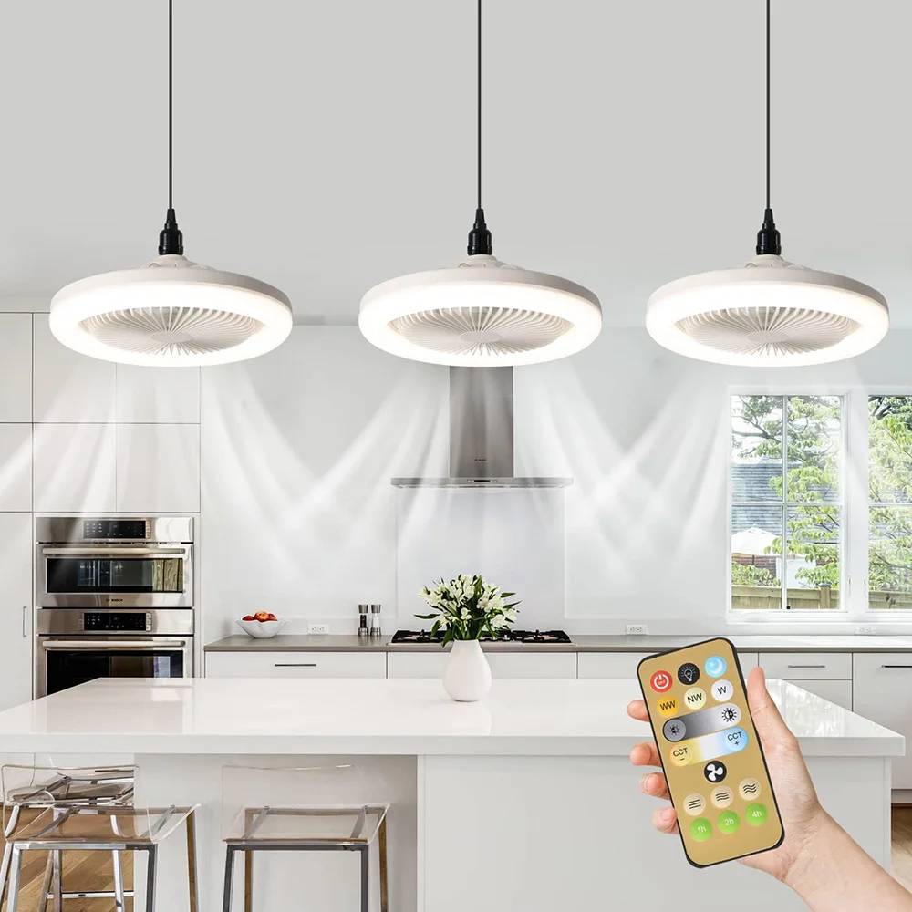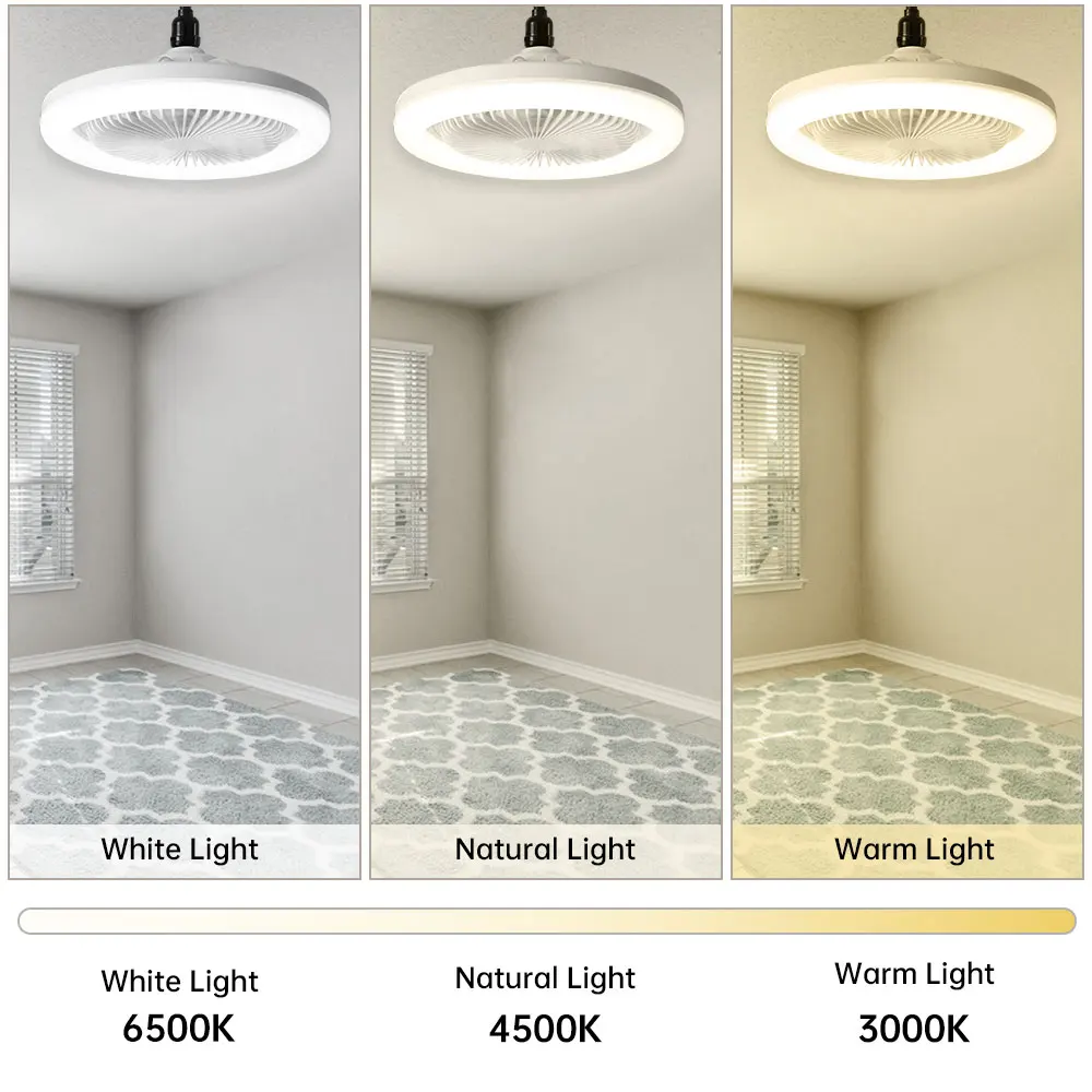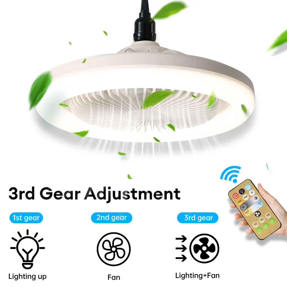 Features:1: The built-in LED lights offer three different color temperatures (warm, neutral, and white), so you can set them in any room and adjust the brightness according to your preferences.2: The E27 screw in base makes installation simple and convenient. Our ceiling fan lights can be used in garages, tool rooms, and more. In addition, our fan bulbs offer three fan speeds (low, medium, and strong) that you can adjust through the remote control to meet your needs.3: There are two control methods for fan lights, one is a wall switch, and the other is a remote control. The remote control can easily change the fan speed and lighting settings from a distance.4: This fan light is equipped with a copper silent motor, which moves gently when the fan blades rotate, effectively reducing noise.5: It can be used in indoor living rooms, bedrooms, children's rooms, cafes, and study rooms, and can also be placed in the kitchen.]Package include:1xceiling fan with lights1x remote control1x instruction manualNote1. Please allow a bit error due to manual measurement. please make sure you do not mind before you bid.2. The color may have different as the difference display, please understand.