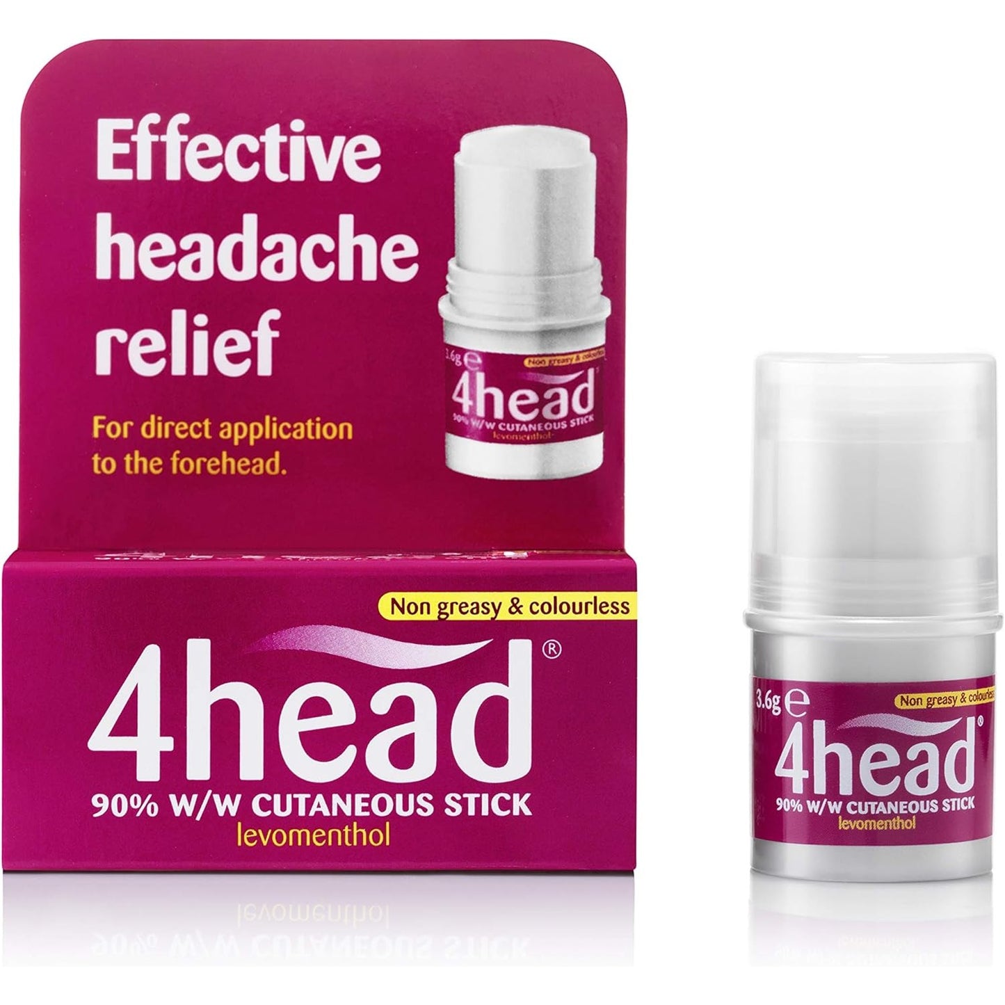 4head is a completely different way to get fast, effective headache relief without the need for tablets!Designed to be applied directly to the forehead, the active ingredient levomenthol is a topical painkiller that can help block pain signals caused by tension headaches and relax the muscles in the head. 4head is made up of 90% levomenthol and quickly after swiping 4head Stick across your forehead, you'll feel the soothing, cooling and tingling sensations that are the first signs of 4head's gesic (painkilling) action starting to work.4head Stick is non-greasy, colourless and leaves no visible residue making it perfect for application whenever necessary. You can apply 4head as often as needed and its small, handy format means it's suitable for use on the go.