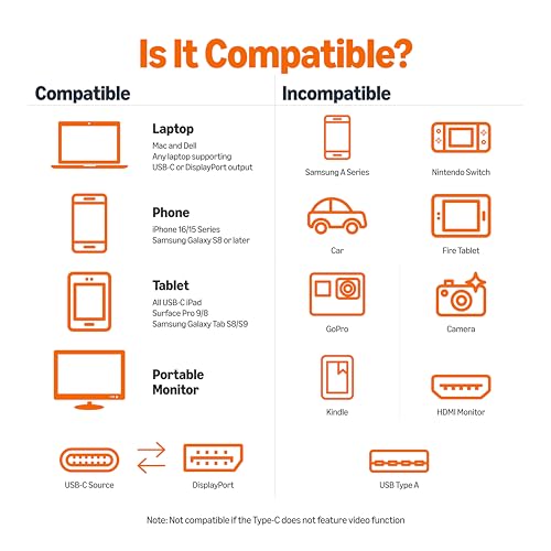 - Versatile use: Compatible with any USB-C-enabled device and DisplayPort-enabled monitors.