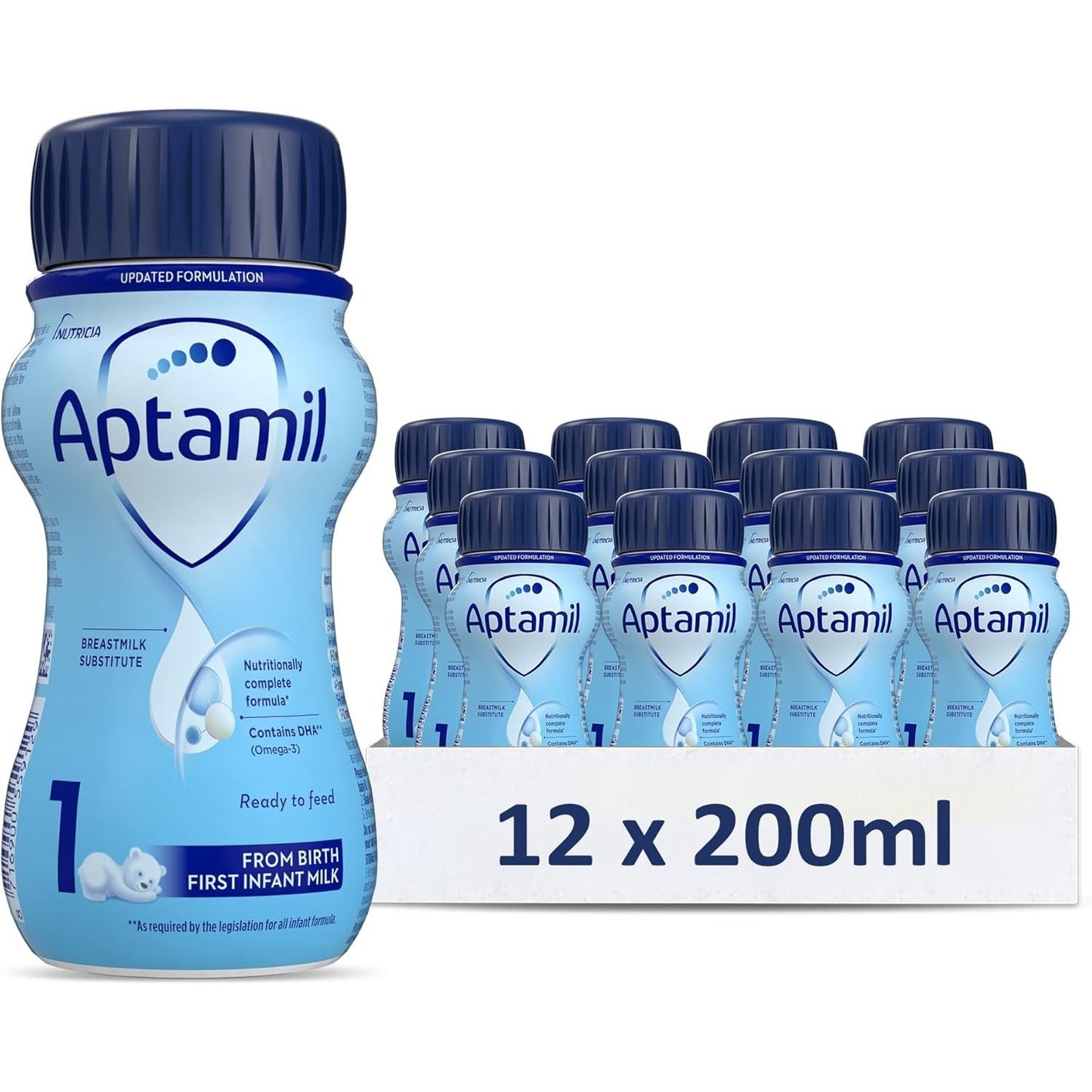 Aptamil First Infant Milk Formula, 0-6 Months, Pack of 12 (200ml each)