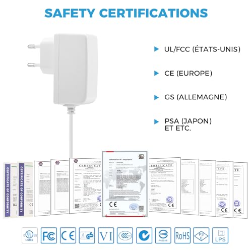 - Input range of 100-240 V, 50/60 Hz, with a stable 9V output for reliable performance.