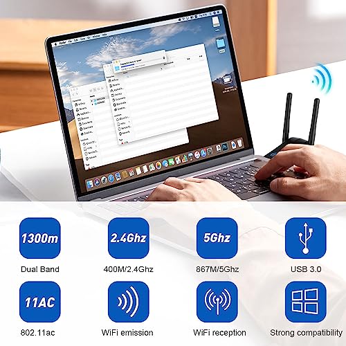 Axfee - AC1300Mbps Dual Band WiFi Adapter with High Gain Antenna for PC/Laptop
