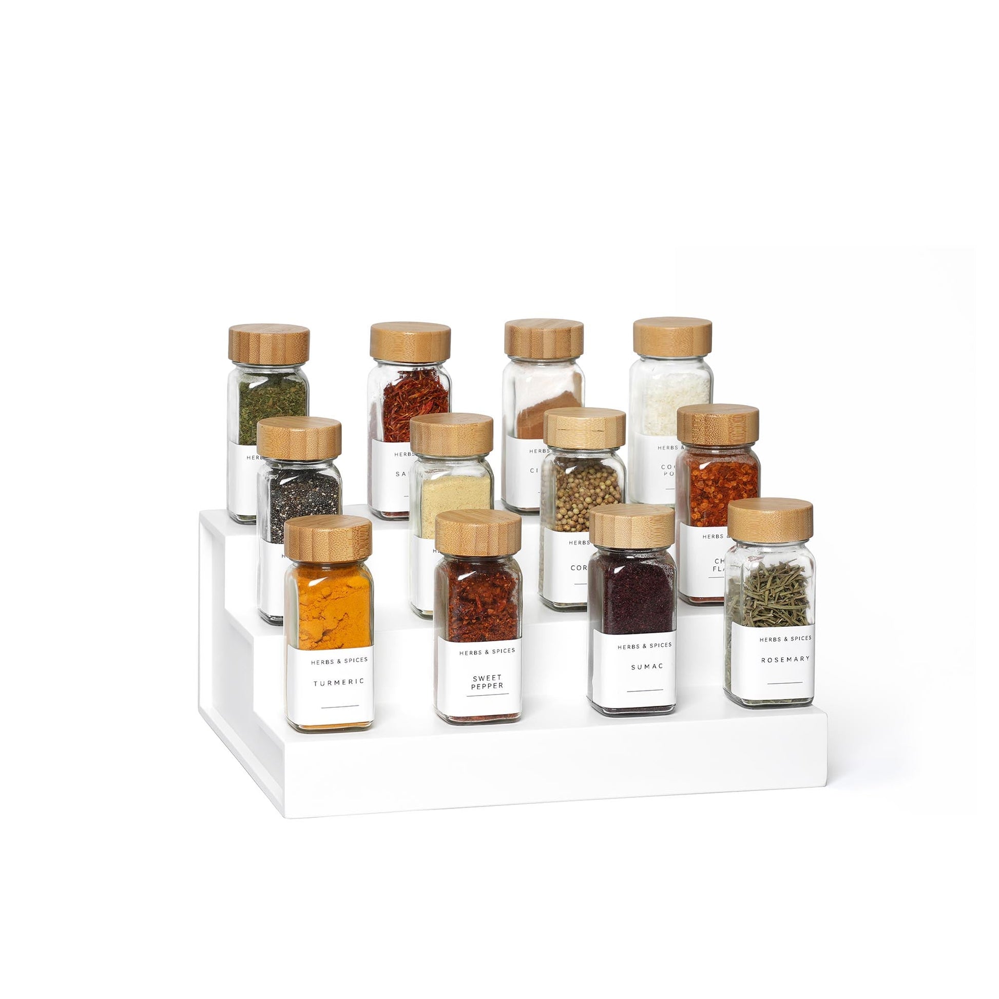White Riser W/ Bamboo Spice Jar Shaker Set