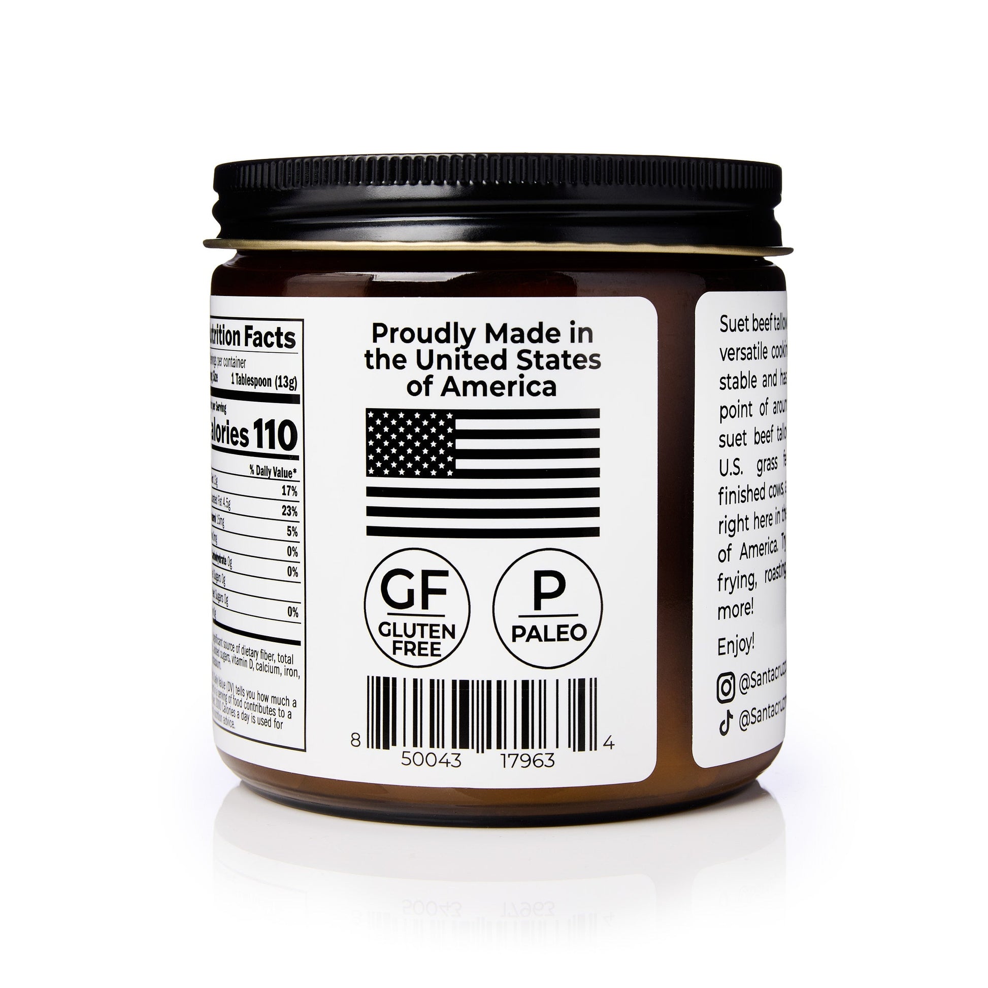 INGREDIENTS: Grass-fed Grass-Finished Suet Beef Tallow.