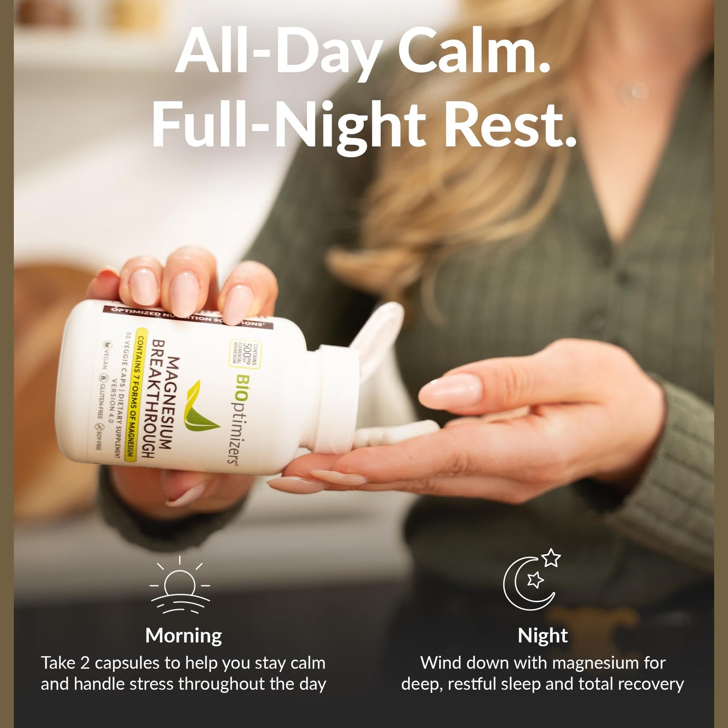 BIOptimizers Magnesium Breakthrough Complex Supplement with 7 Forms of Mg: Glycinate, Malate, Citrate, and More - Natural Support for Sleep and Cognitive Function - 60 Capsules- Calming Vitamins