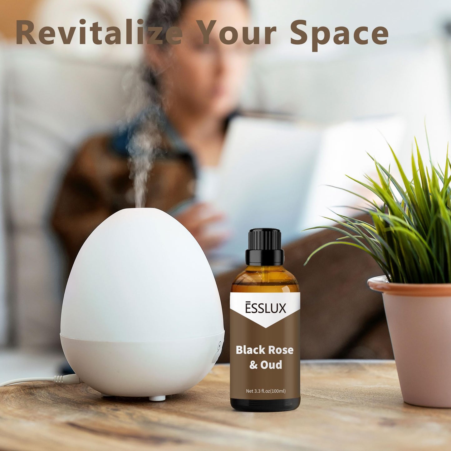 Black Rose & Oud Fragrance Oil, ESSLUX Large Single Scented Oils 100 ml (3.3 oz), Aromatherapy Essential Oils for Home for Diffuser, Massage, Soap, Candle Making Scents