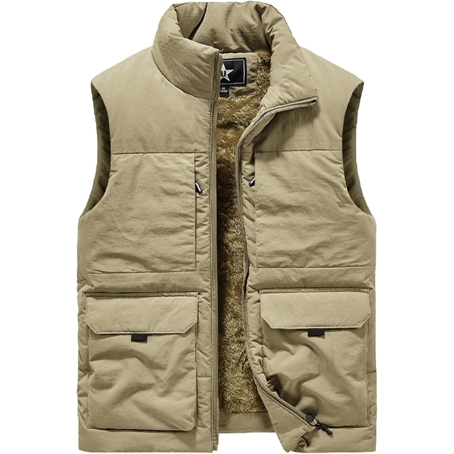 Btmpmcs Men's Fleece Vest with Multiple Pockets Lightweight Quilted Vest Winter Warm Outdoor Thick Vest Windproof Sleeveless Jacket Fishing Vest Leisure Vest Work Vest Sports Vest
