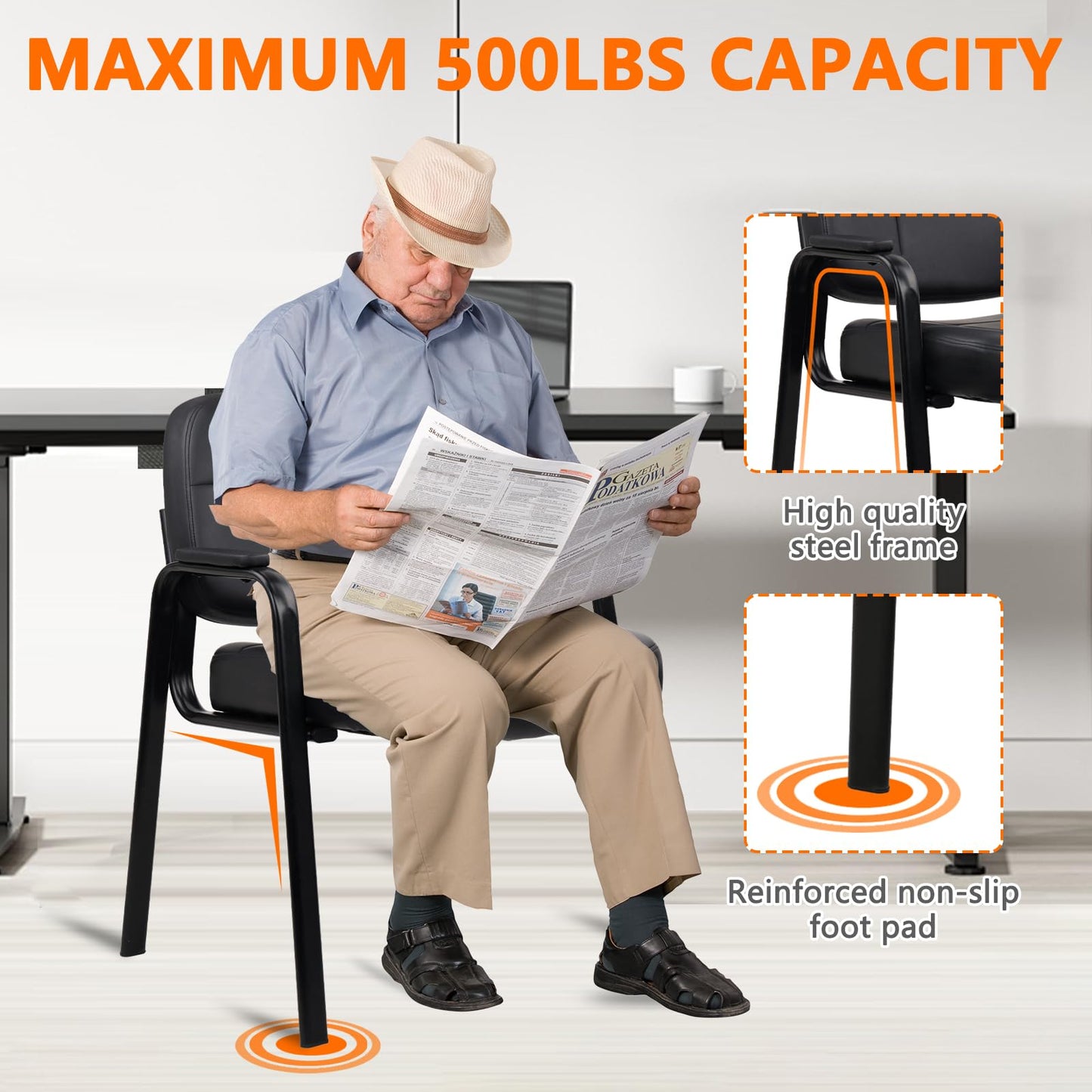 - 【Premium Material】 CLATINA guest chair is made with finest quality craftsmanship and premium materials, a combination of PVC leather upholstery on the back, seat and padded arm rests, durable sturdy frame, guaranteed to withstand the test of time.
