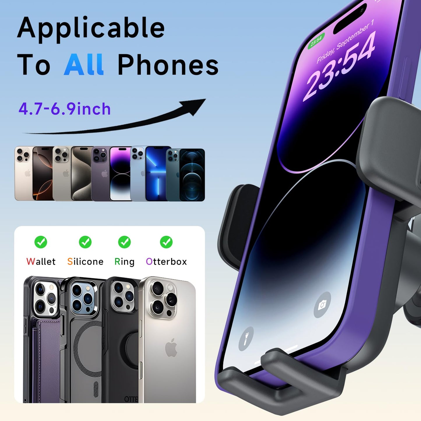 - Universal Phone Fit:The design is suitable for all devices with sizes ranging from 4.7'' to 6.9''. This truck phone holder features a one-click release and protection mechanism, which enables quick and easy installation of the phone and prevents it from being scratched or dropped, significantly enhancing the stability and safety during driving