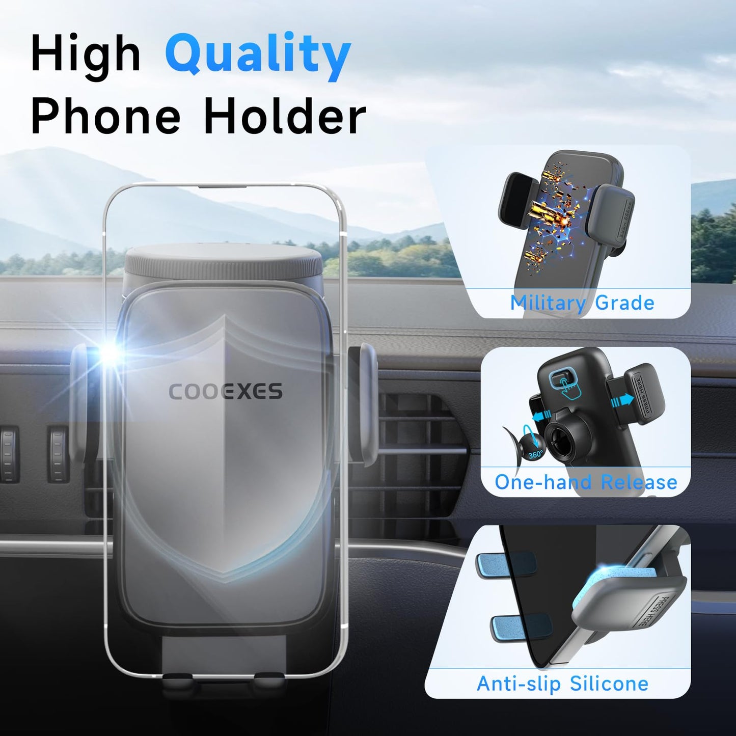 COOEXES Car Phone Holder, 360°Rotation Vacuum Suction Cup Phone Mount - 108LBS Nano Gel for Car, Bendable Arm & One-Hand Release, Truck Phone Holder for iPhone 17 Pro Max Samsung Android