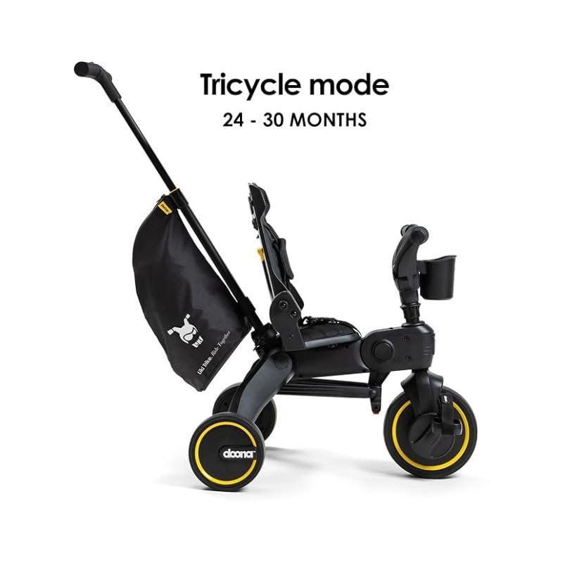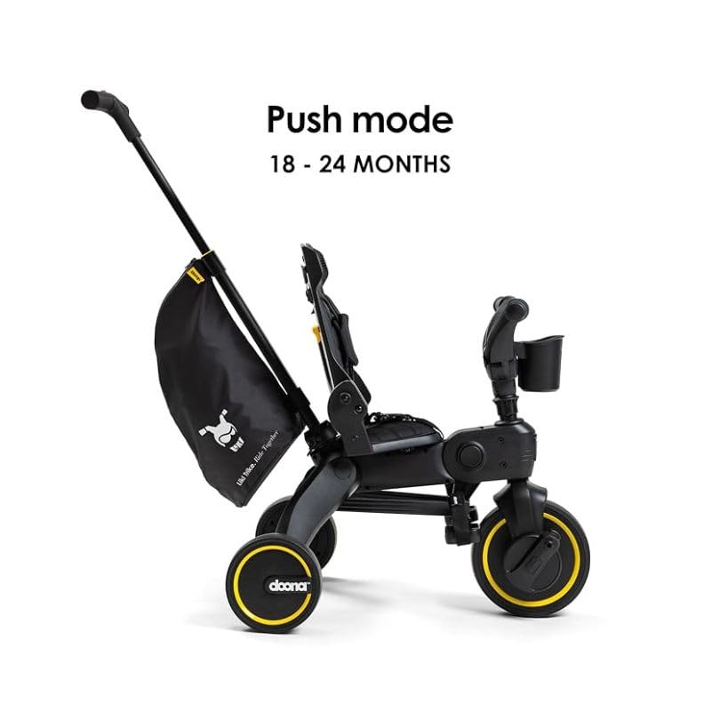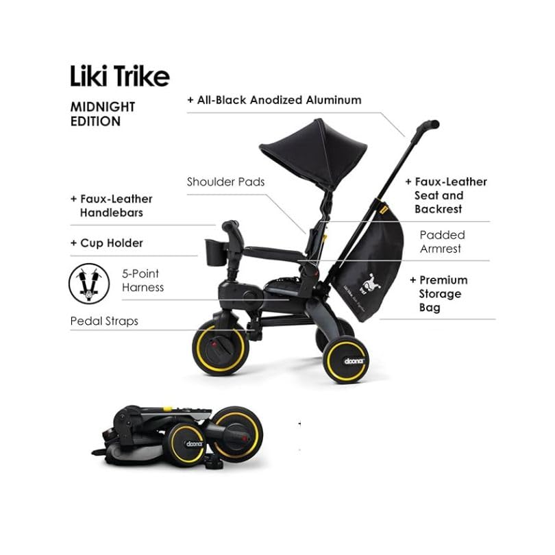 Doona Liki Compact Folding 5-in-1 Trike - Midnight Black | Lightweight, Fully Assembled Stroller Trike with Dual Steering & UPF 50+ Sun Canopy - Perfect for Travel & Storage