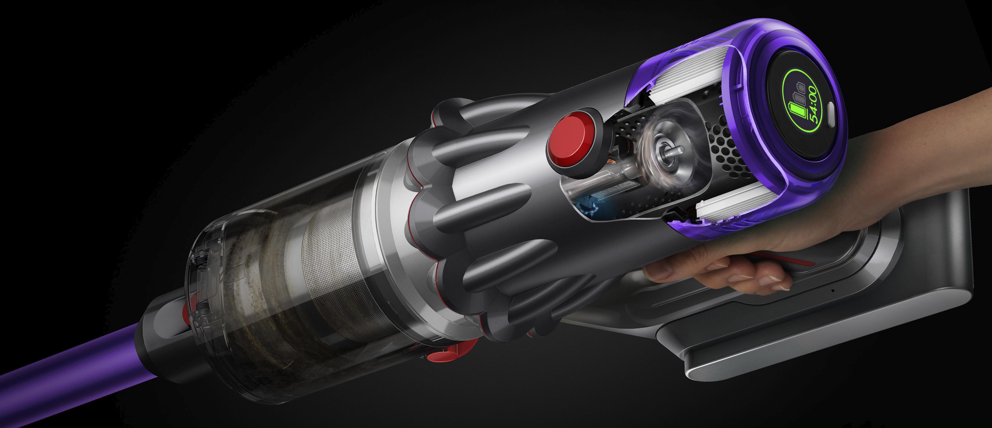 Powerful, lightweight digital motor spins up to 125,000rpm to suck up microscopic dust and large debris – in a machine weighing just 2.2kg