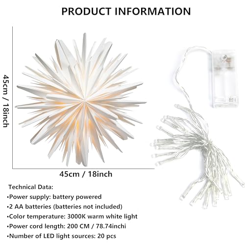 Eanloly - Illuminated LED Christmas Star for Indoor Window Decoration, 45 cm