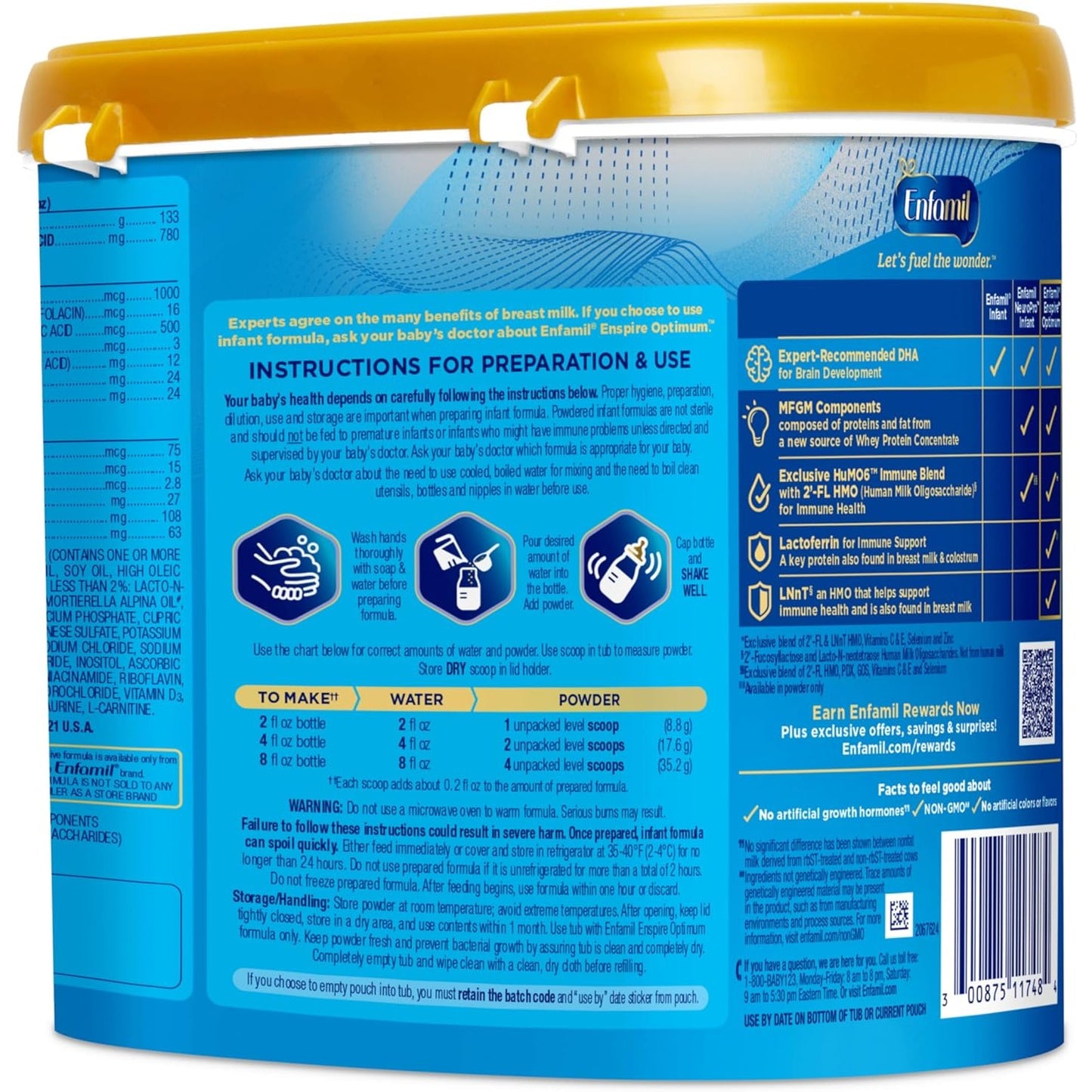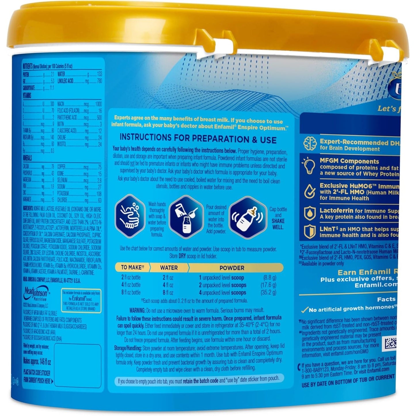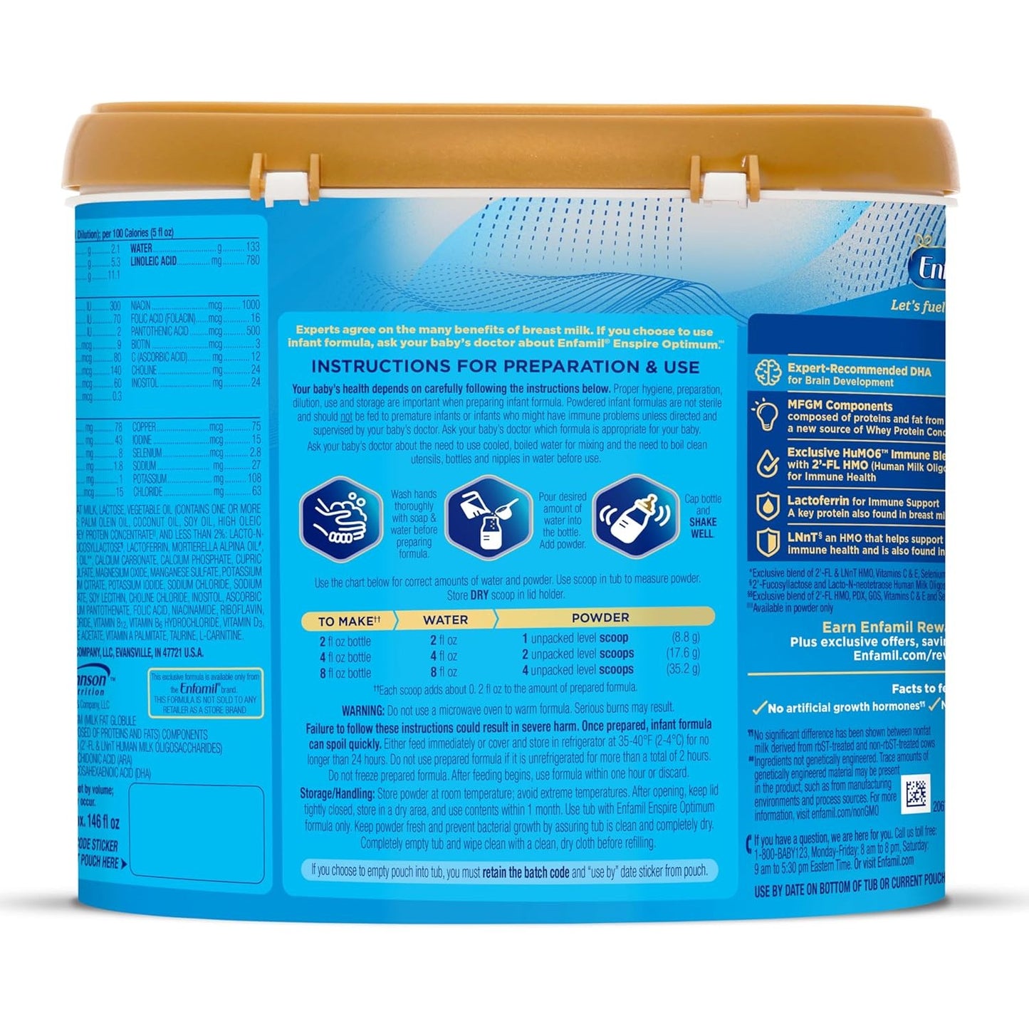Enfamil Enspire Optimum Baby Formula, with Immune-Supporting Lactoferrin, Our Closest Formula to Breast Milk, Brain Building DHA, Dual Prebiotics, Infant Formula Powder, Baby Milk, 20.5 Oz