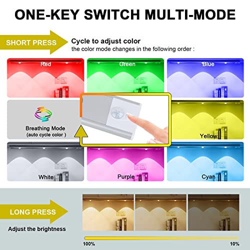 Greesuit - 7 Color LED Under Cabinet Lights, Rechargeable, Motion Sensor, Wireless