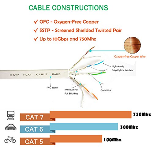 Joni Fun - Cat 7 Super Fast Ethernet Cable, 750 MHz, 10 GB, Includes Clips