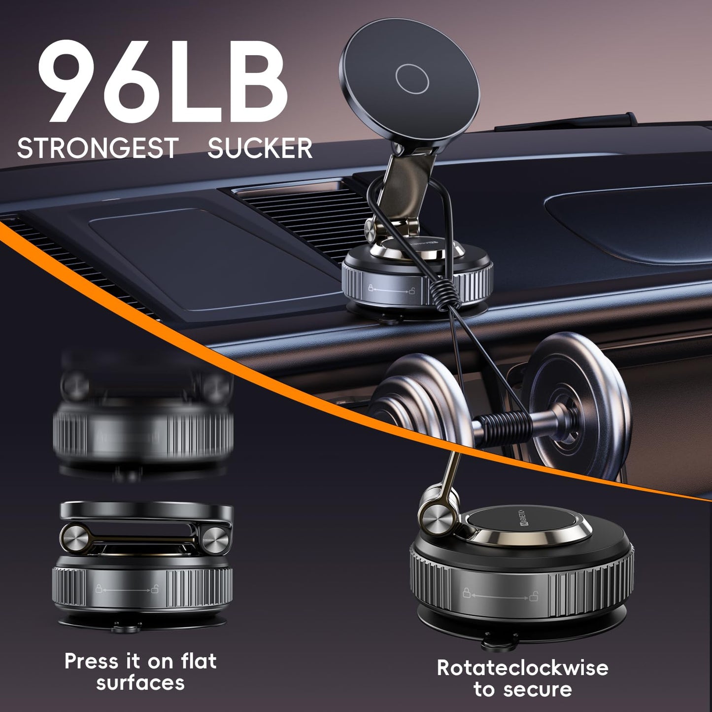 Magnetic Phone Holder for Car 2026 Heavy Duty Model 360° Adjustable Vacuum Suction Car Magsafe Phone Mount Cell Phone Holders for Your Car for iPhone 16 Pro Max 15 14 13 12 Plus (Metal Stand Rotor)