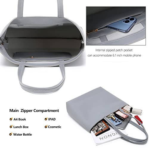 Meegirl - Simple PU Leather Tote Bag with Zip, Inner Pocket, Stylish Design