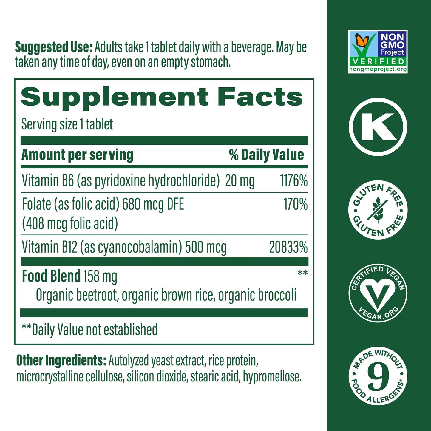 MegaFood Vegan Vitamin B12, Vitamin B Supplement with Vitamin B6, B12 Vitamins, and Folic Acid, Supports Cellular Energy Production, Nervous System Health & Cardiovascular Function - 30 Tablets