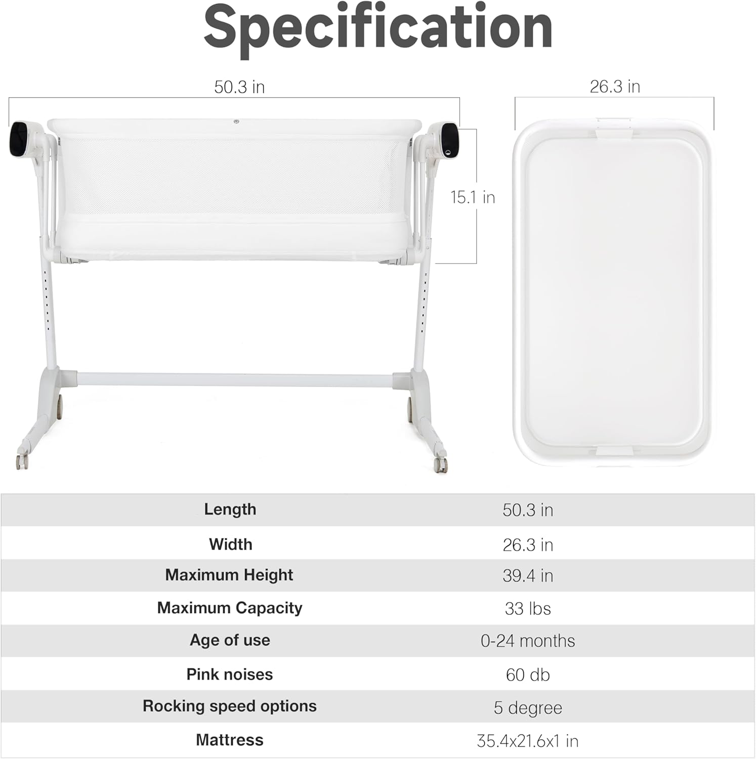 -Smart Cry Detection: Intuitively senses your baby’s cries and activates gentle rocking and soothing sounds for instant comfort.