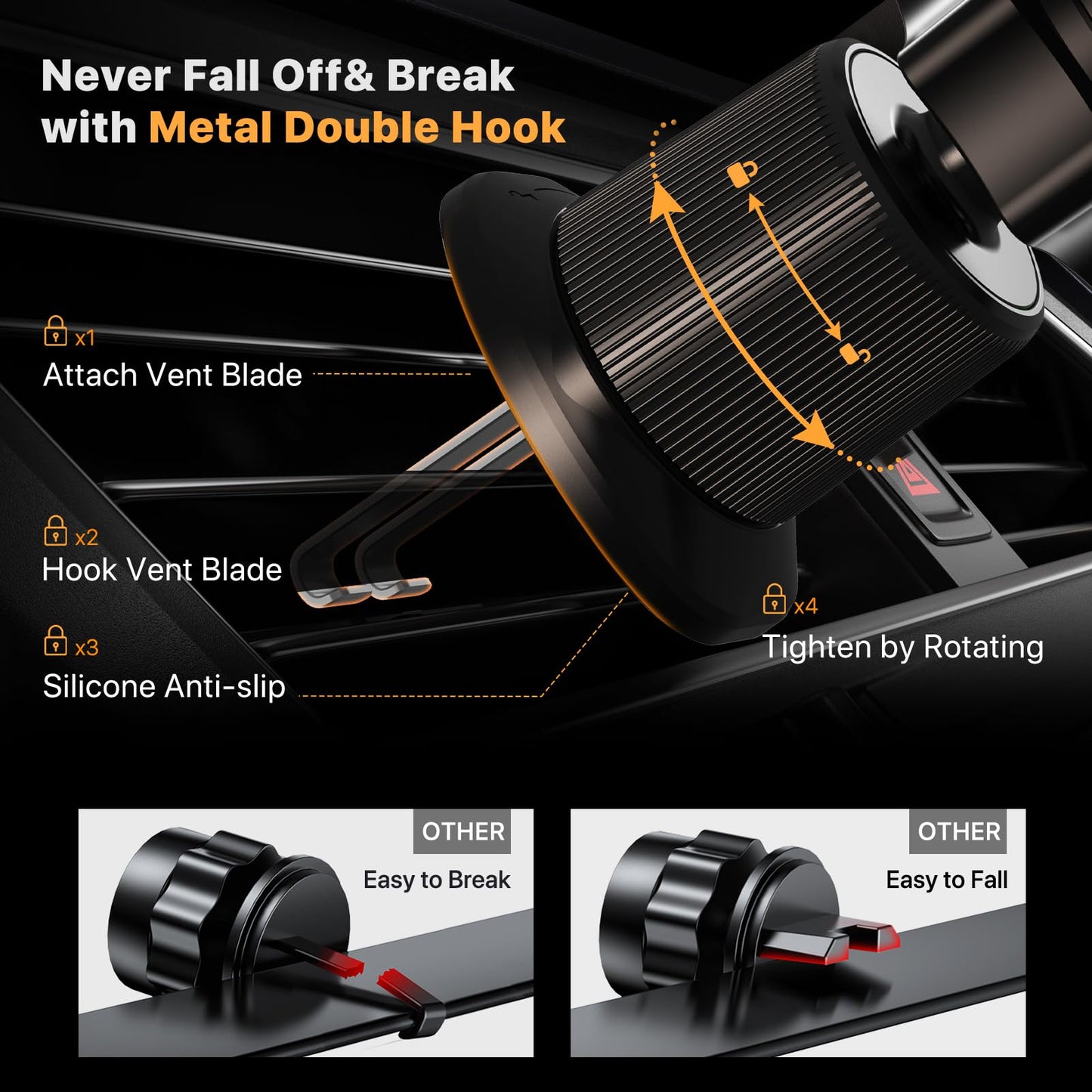 Miracase Phone Holders for Your Car with Metal Hook Clip, Air Vent Cell Phone Stand Car Mount, Universal Automobile Cradle for Garmin GPS Fit iPhone Android and All Smartphones, Dark Black
