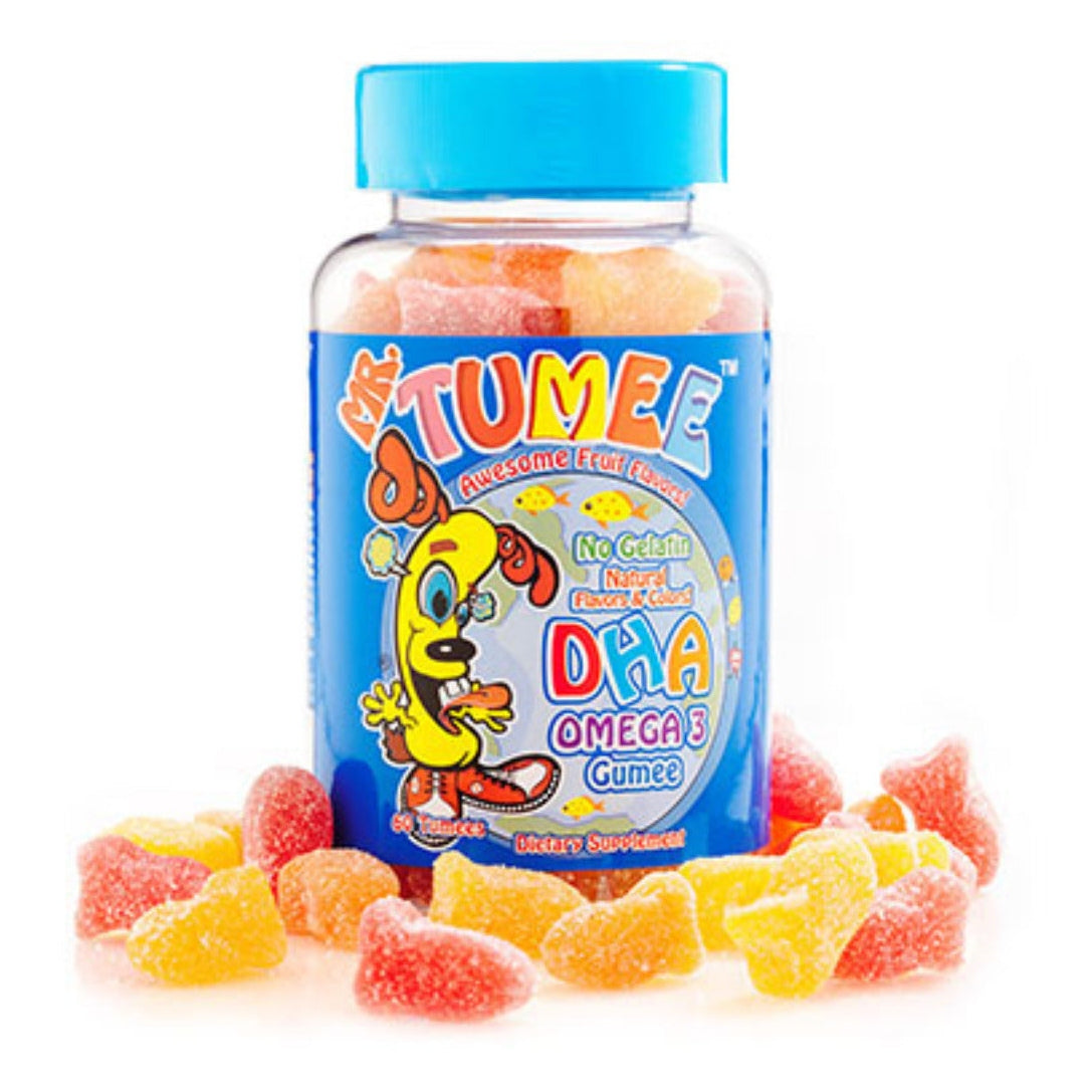 Mr.Tumee Omega3 Gumee formula is specially designed to help children get their daily intake of DHA/EPA Omega-3. This plays an important role in the healthy development and functioning of the brain. DHA may also be important in the development of the retina, heart and parts of the nervous system from infancy to adulthood. Mr.Tumee Omega3 Gummies are made with all-natural flavors and colors.
