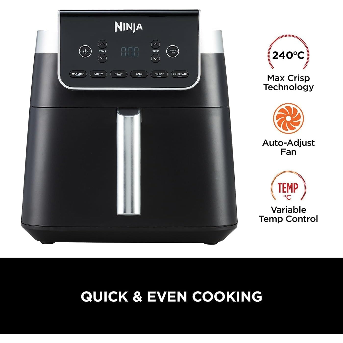 Ninja Air Fryer MAX PRO, 6.2L, Uses No Oil, Large Square Single Drawer, Roast, Bake, Air Fry, Family Size, Digital, Cook From Frozen, Non-Stick, Dishwasher Safe Basket & Crisper Plate, Black, AF180ME