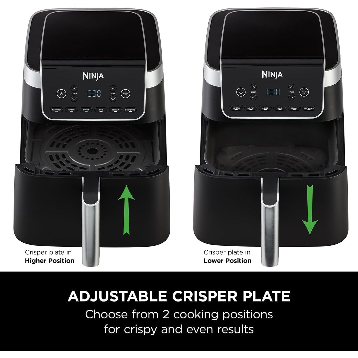 6 COOKING FUNCTIONS: Max Crisp, Air Fry, Roast, Bake, Reheat, Dehydrate. Cook frozen food in minutes with Max Crisp and 240°C temperatures. Adjustable Crisper Plate with 2 cooking positions.
