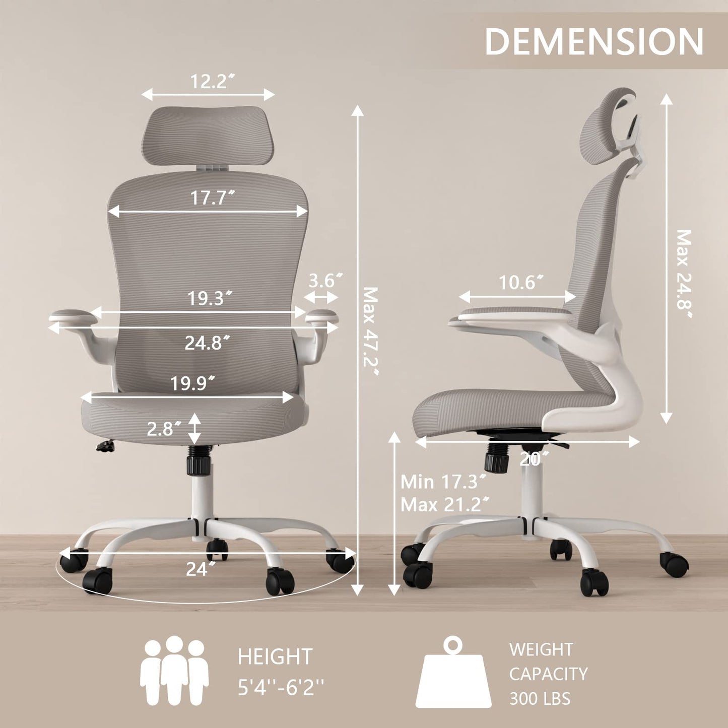 Office Chair, High Back Ergonomic Desk Chair, Breathable Mesh Desk Chair with Adjustable Lumbar Support and Headrest, Swivel Task Chair with flip-up Armrests, Executive Chair for Home Office