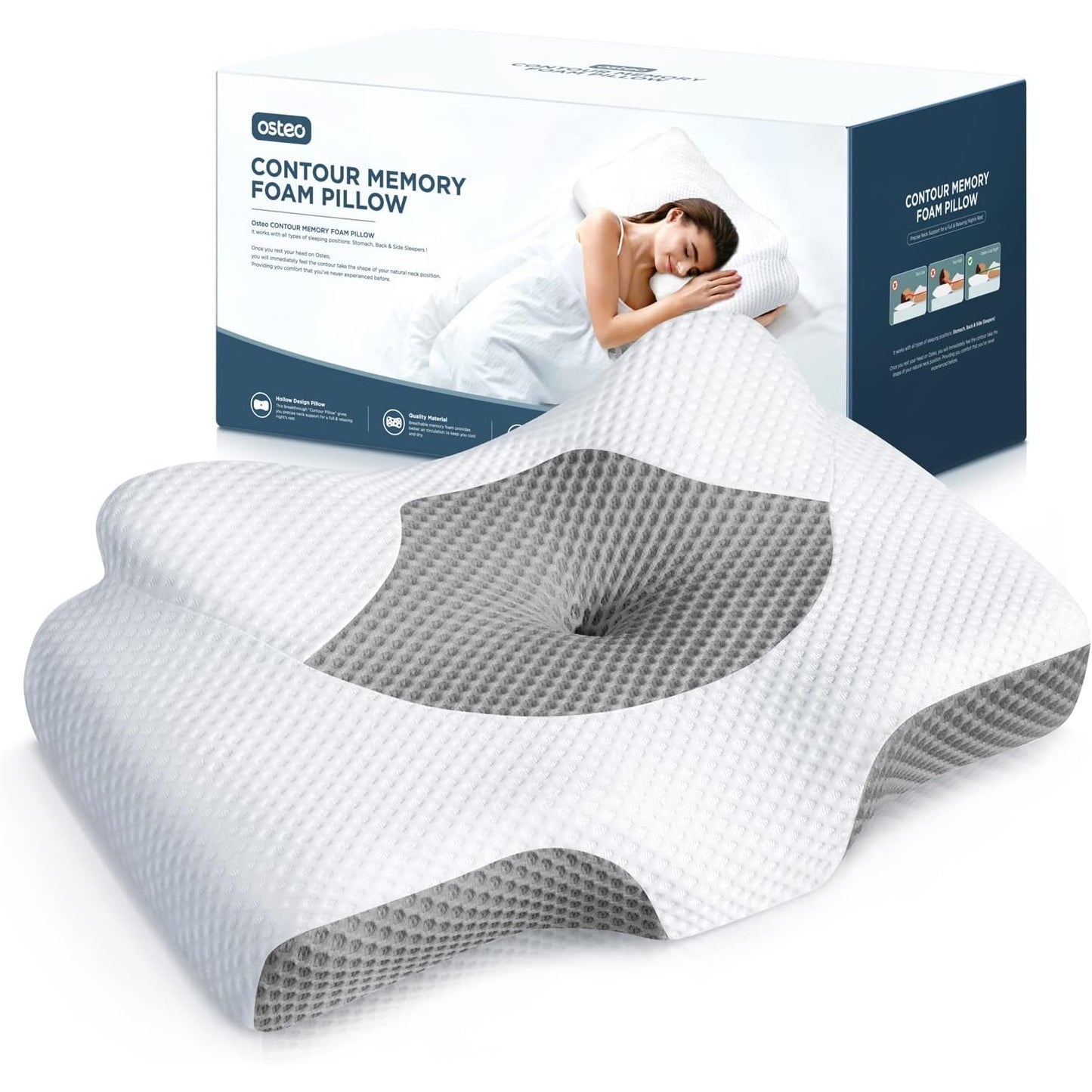 【STOP! THE NECK PAIN & SLEEPLESS NIGHTS ARE OVER!】After years of discomfort, you've found salvation at last! Meet the game-changer in the pillow industry, all-new ergonomic pillow with US patent – Osteo! The unique design of the hollow center is what sets it apart! The special hollow center cradles the head, helps maintain the natural cervical curve and alignment of the vertebrae in your neck, aims to maintain good blood flow to your neck and head, relieve pressure and remove muscles tension.