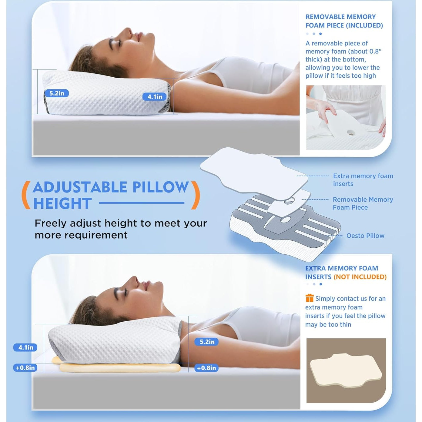 Osteo Cervical Pillow for Neck Pain Relief, Hollow Design Odorless Memory Foam Pillows with Cooling Case, Adjustable Orthopedic Bed Pillow for Sleeping, Contour Support for Side Back Sleepers