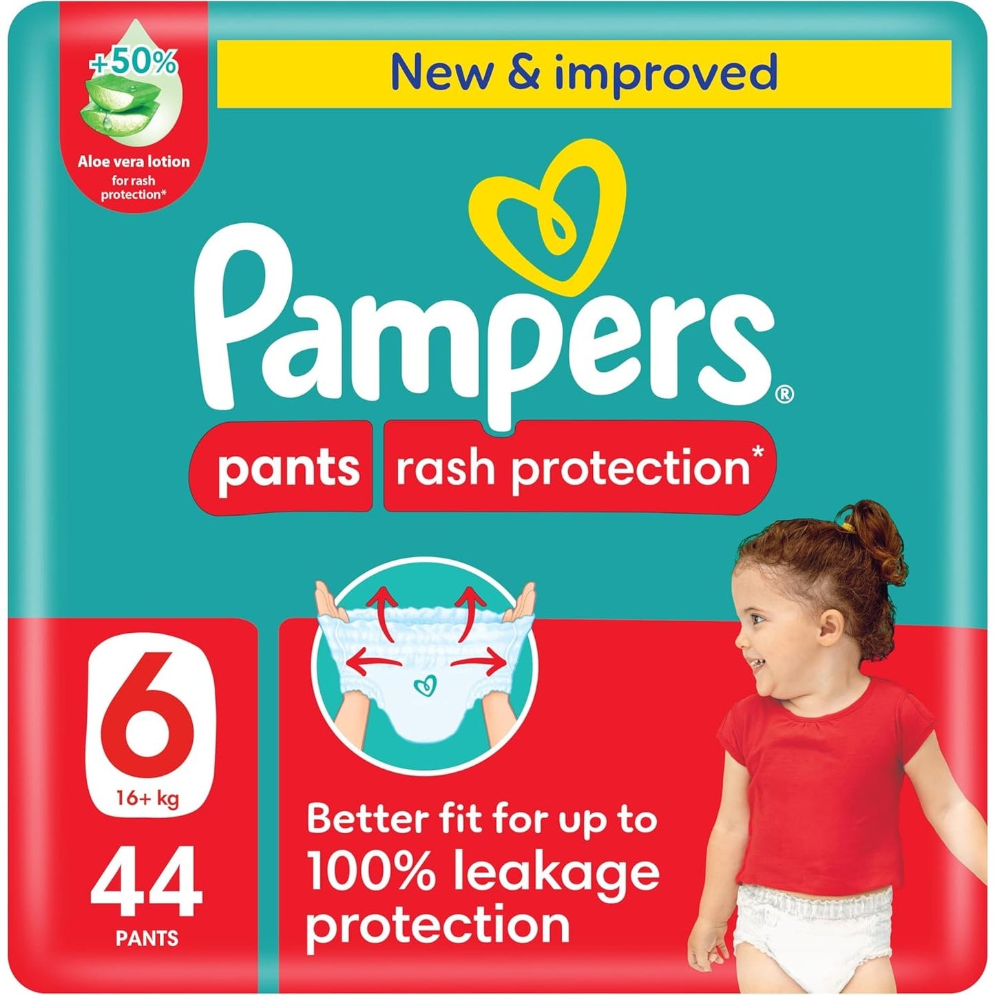 Pampers Rash Protection Pants Diapers, Size 6, 16+kg, +50% Aloe Vera Lotion, 360° Leak-Free Fit for up to 100% Leakage Protection, Giga Box, 168 Count
