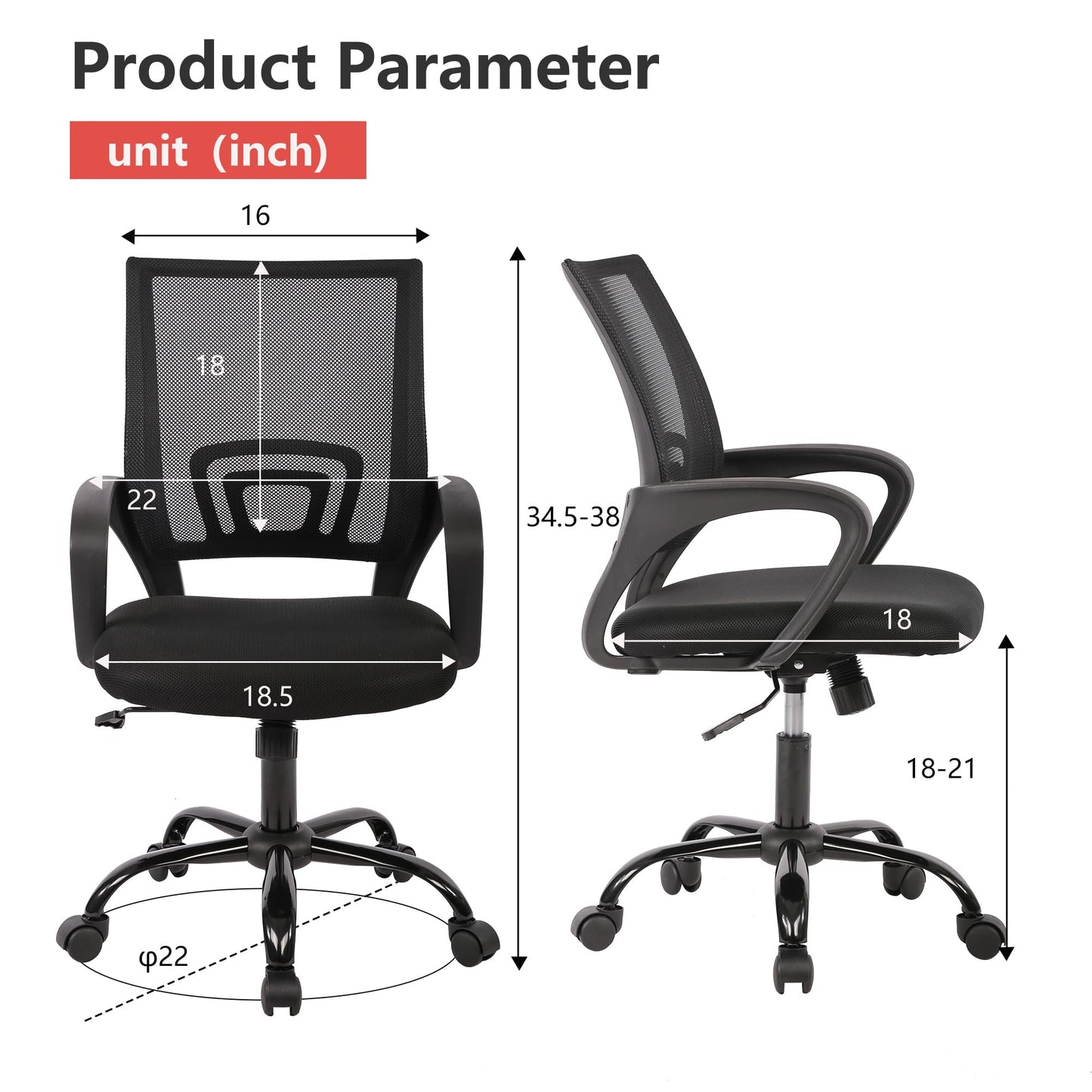 - Ventilated Nylon Lumbar Support: Our office chair is equipped with a ventilated nylon lumbar support that conforms to your lower back's natural curve. This desk chair providing excellent lumbar support and preventing discomfort during extended sitting sessions. The breathable mesh material of computer chair promotes airflow, keeping you cool and focused throughout your workday.