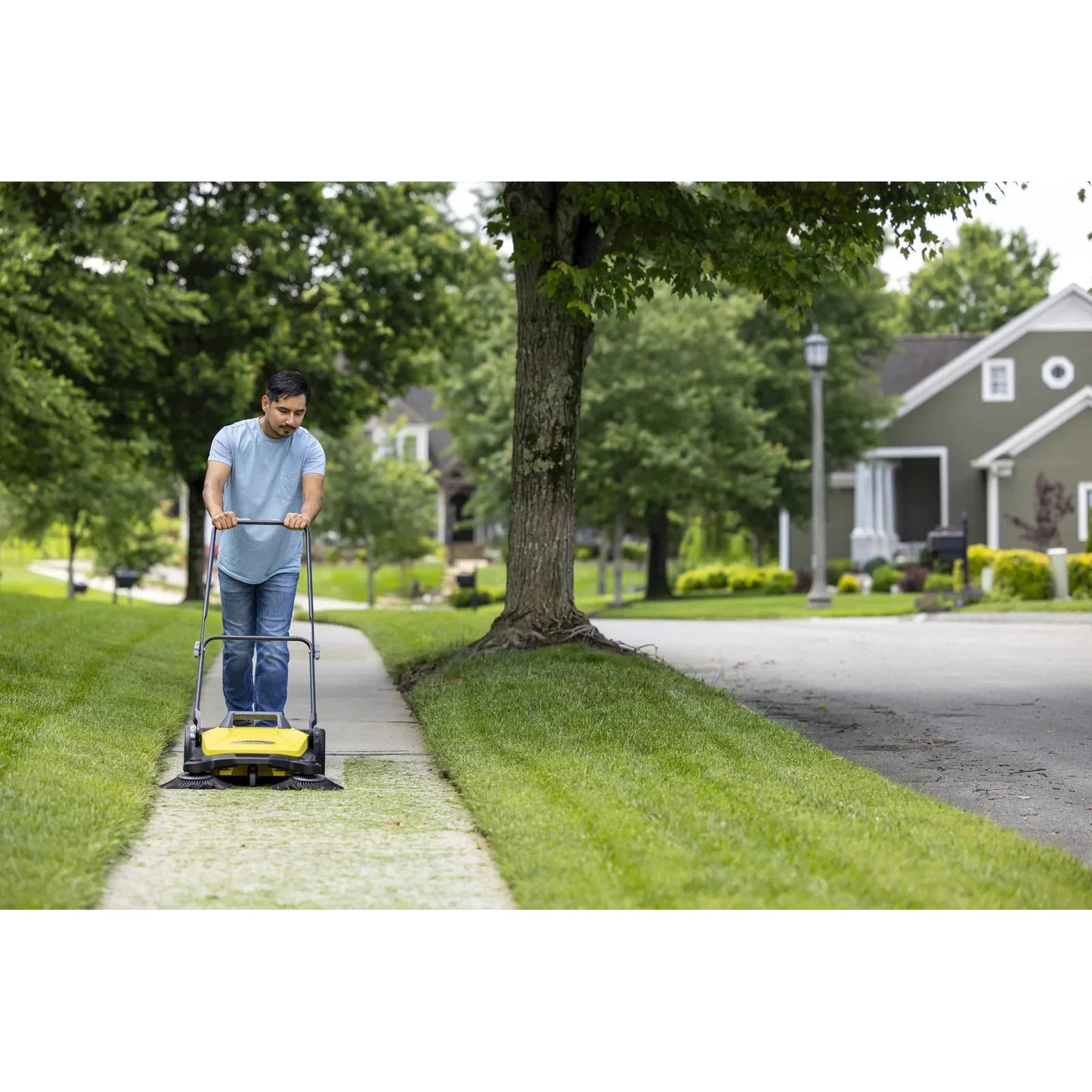 Whether it is petals in spring, sand in the summer, leaves in autumn or grit in winter: The effective and ergonomic S 4 Twin sweeper from Kärcher ensures dazzling appearances around the house and garden in record time all year round. With its powerful roller brush, 2 side brushes and a sweeping width of 680 mm in total, it effortlessly sweeps areas of up to 2400 m² per hour. The machine transports the waste directly into the 20 litre waste hopper. The long bristles of the side brushes ensure thorough cleanliness right to the edge. The infinitely variable push handle can be optimally adapted to the height of the respective user. Thanks to the bayonet fitting screws can no longer get lost when adjusting the height. The sweeper can be easily collapsed as required without stooping thanks to a footplate at the frame and carried by the handle – for space-saving storage. The tool-free side brush attachment is unique. The sweeper is ready for use in no time. The waste hopper can be easily removed and safely put down and emptied without any contact with dirt.