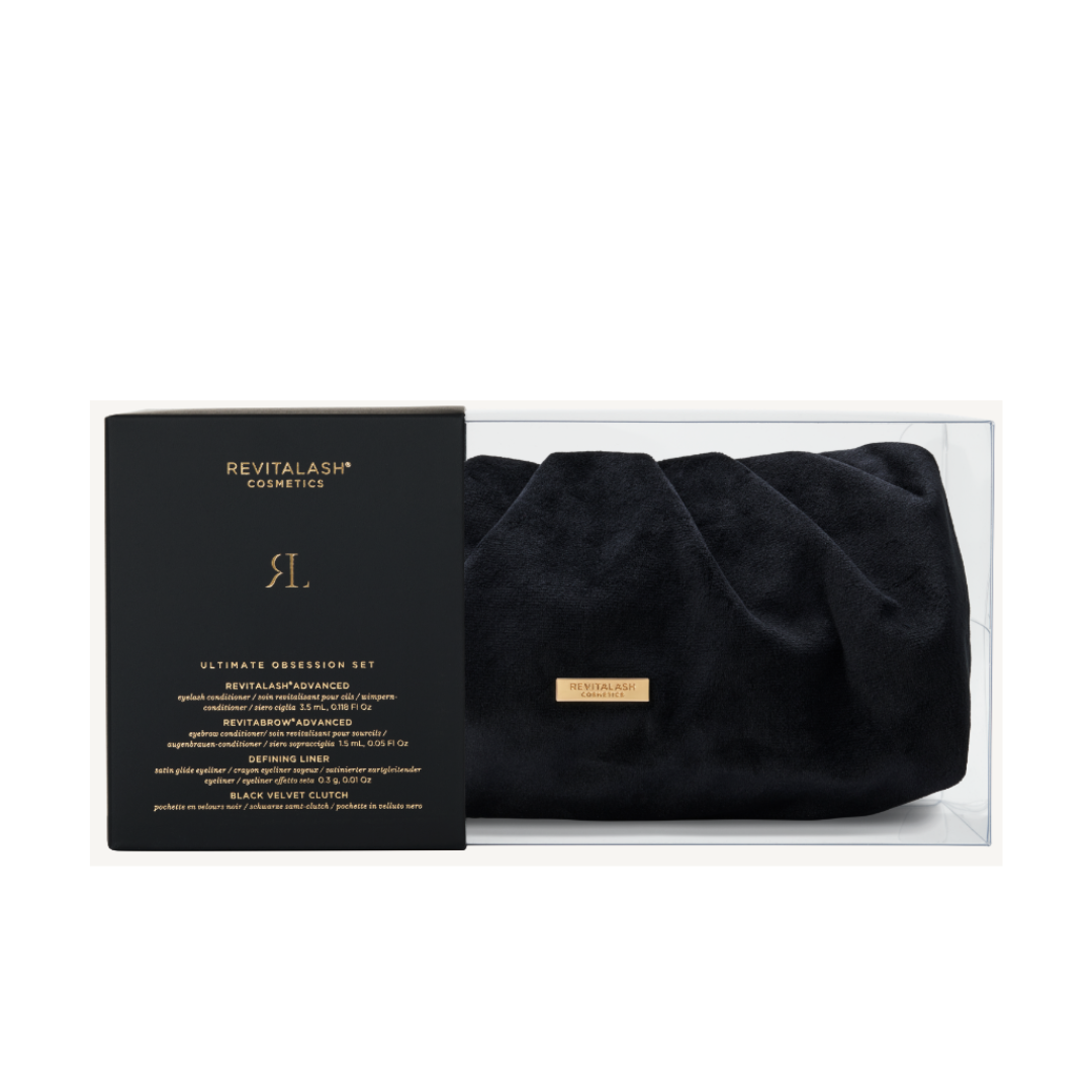 - Our lash kit features RevitaLash® Advanced eyelash conditioner 3.5mL, RevitaBrow® Advanced eyebrow Conditioner1.5mL, and Defining Liner in Black + Velvet Clutch
