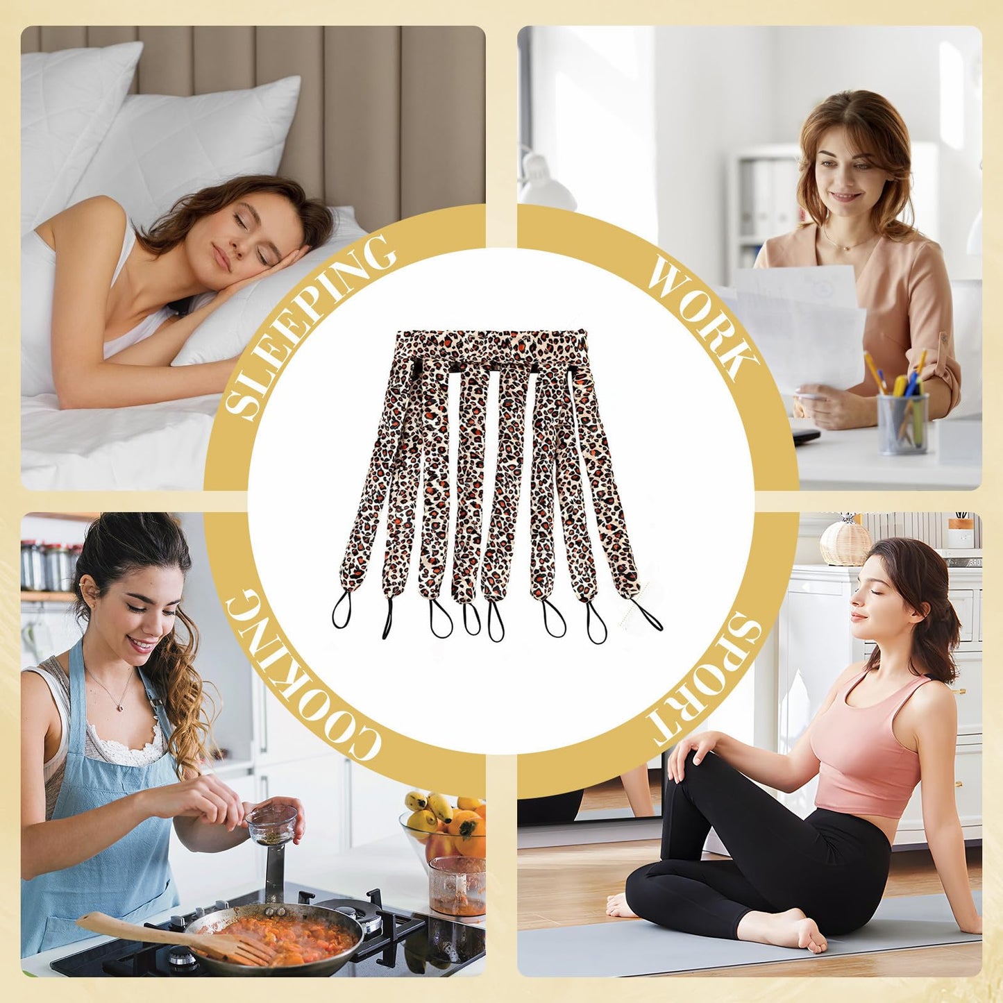 Satin Heatless Hair Curler for Long Hair - Adjustable 8 Rollers Set, Overnight Sleeping Curlers Headband for Natural Waves, No Heat Damage, DIY Styling Kit for Women & Girls(Leopard Color)