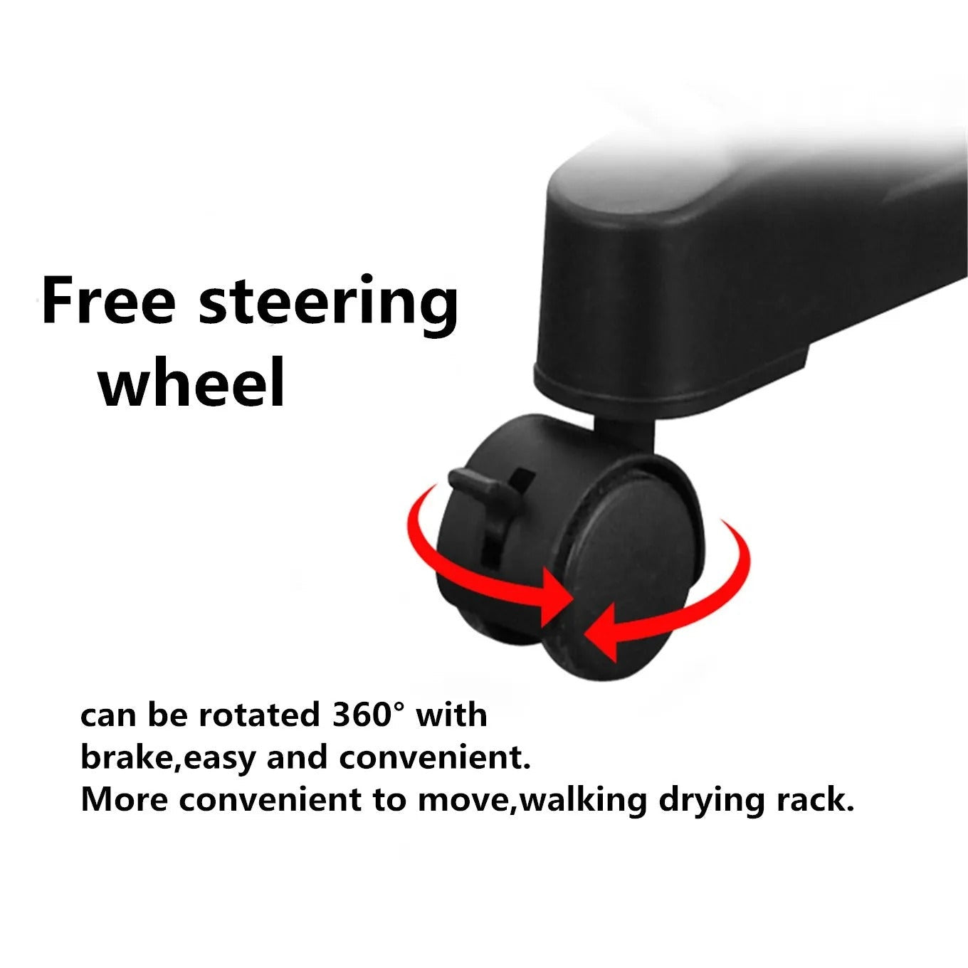 Equipped with sturdy wheels for effortless movement, glide your rack anywhere with ease.
