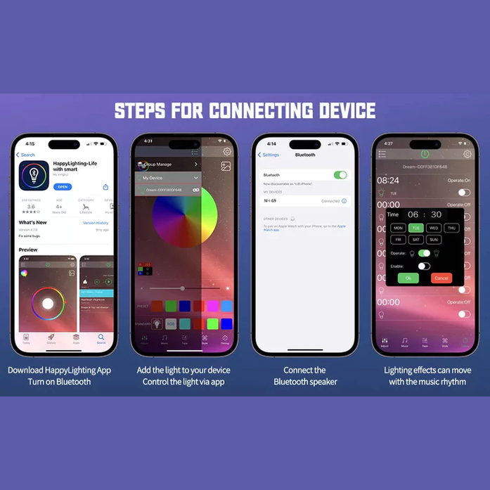 *The dimmable table lamp can be controlled via the HappyLighting app, which allows for infinite dimming (0-100%) and a range of soothing light effects to help you relax and wind down at night. The lamp also features 5 levels of brightness, 16 million light colors, and 256 lights, making it perfect for sleep, meditation, reading, or relaxing.