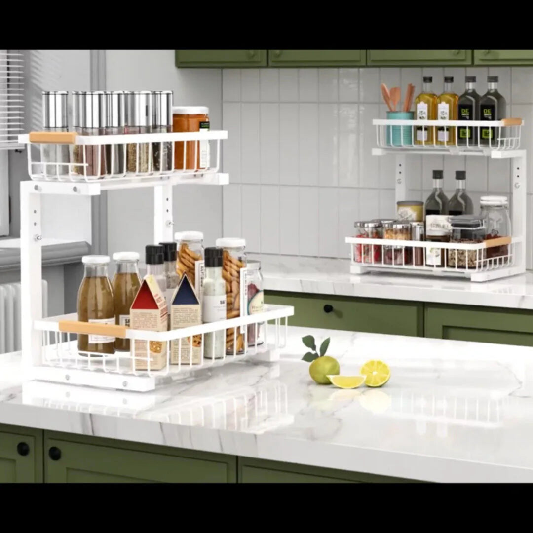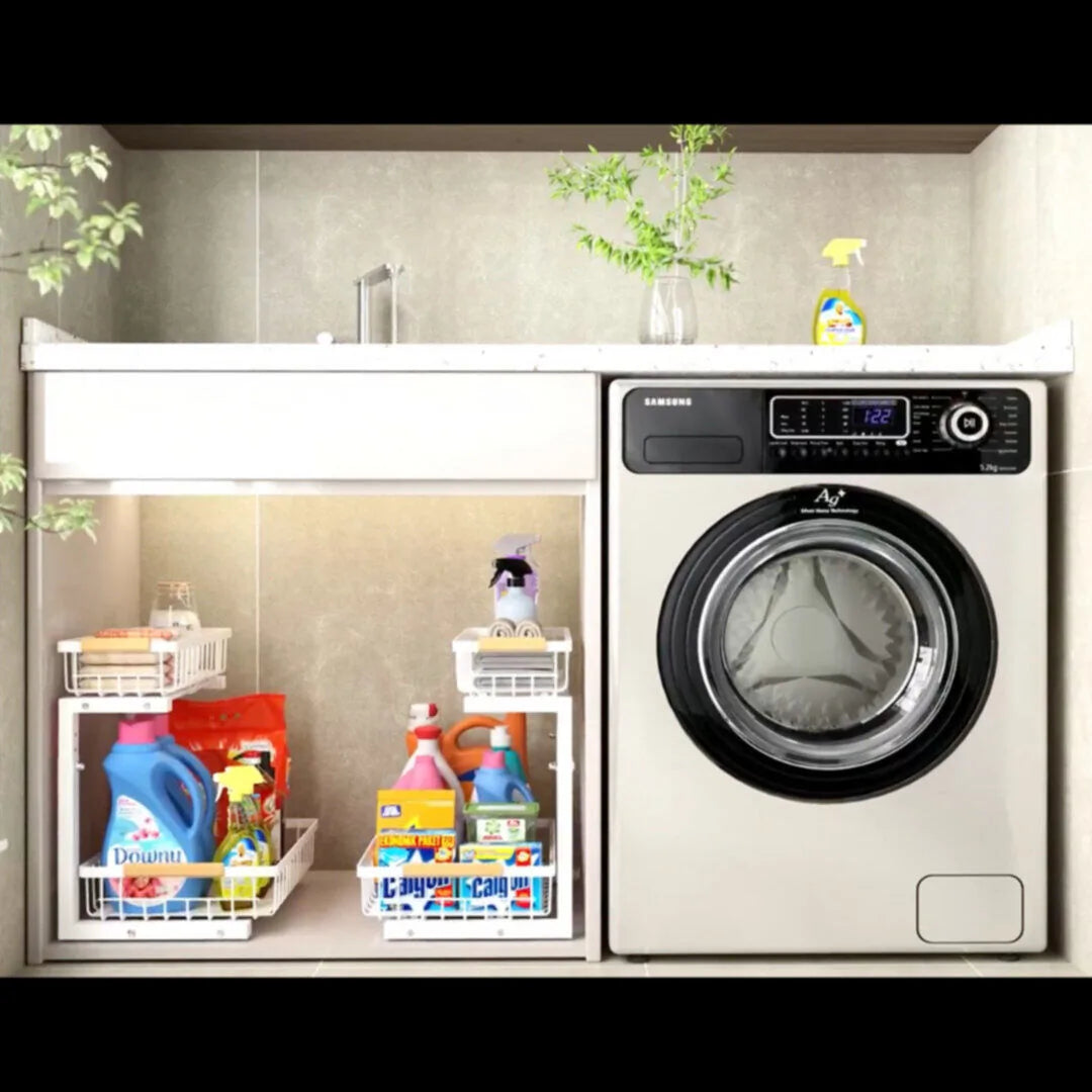 Steel 2 tiers drawer that slides out to organize items under the sink