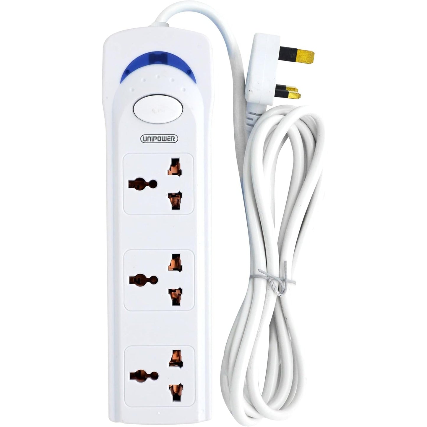 Unipower EX-1242 Power Socket with 3 Way Outlets and Extension Cord, 3 Meter Length, White