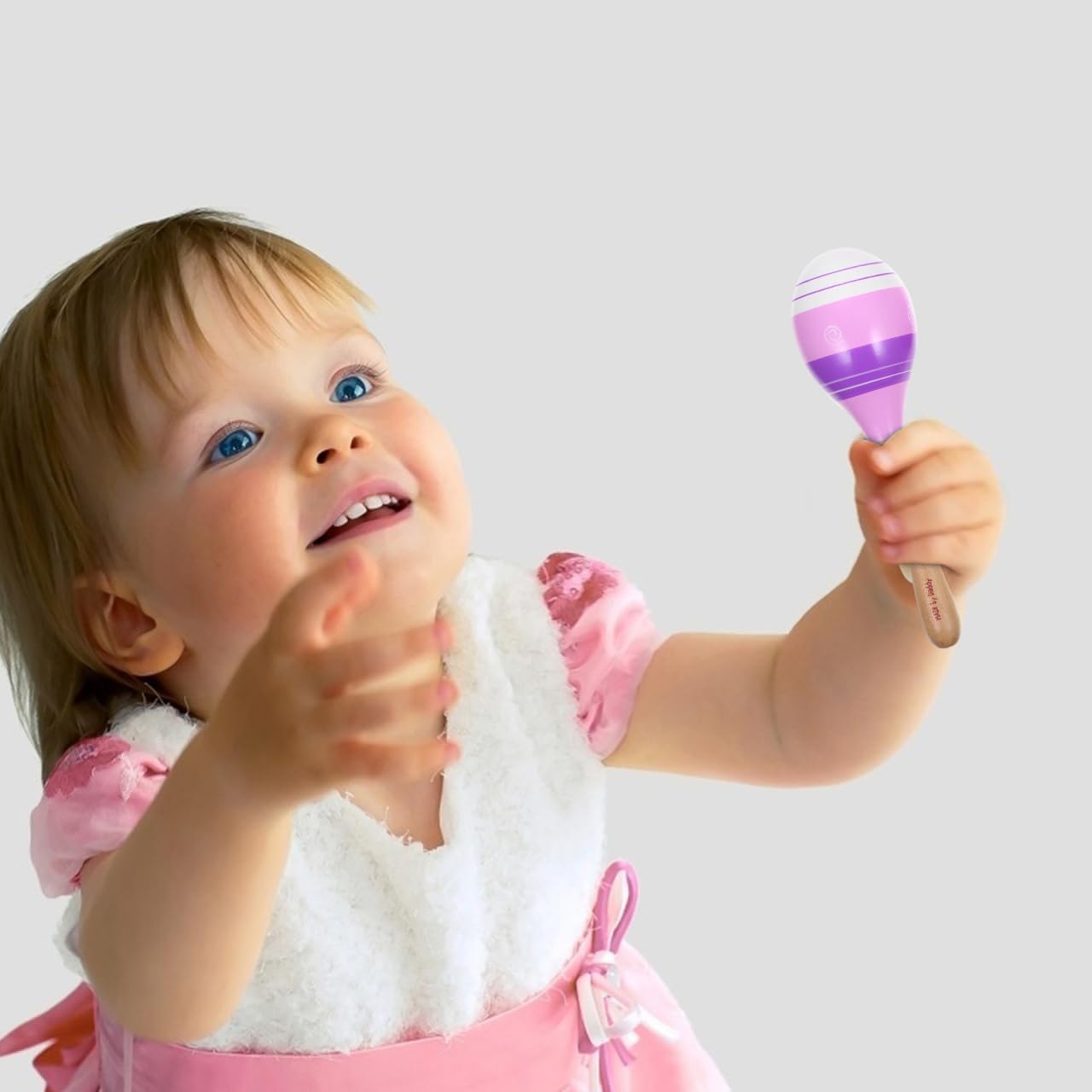 Vaguelly 2Pcs Maracas Children Wood Rumba Shakers Rattle Hand Striped Carnival Maracas Musical Playthings Kids Educational Shaker Sand Hammers with Rhythm for Party Games for age 3+