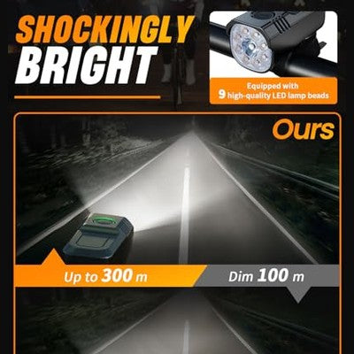 - Ultra-bright 10000 lumen output with 9 LED configuration ensures maximum visibility for safe cycling.