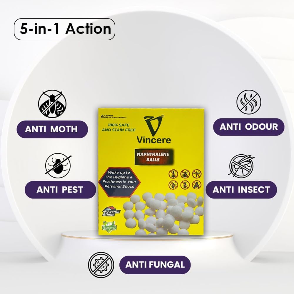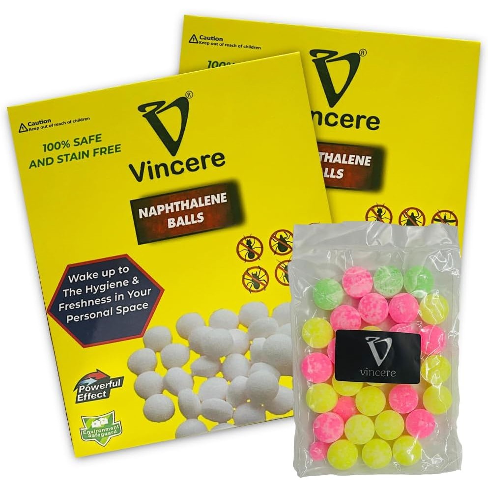 Vincere Naphthalene Balls 100g, Combo Pack of 2 (200 Gram), Moth Balls, Stain Free, Repells Insects, Moths, Cockroaches, Naphthalene Balls for Wardrobe, Bathroom, Toilet, Basins, Bidets