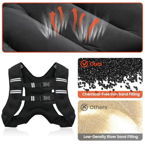 - EVEN WEIGHT DISTRIBUTION - The vest is evenly filled with iron sand, ensuring an even weight distribution. This helps to minimise the risk of injury during exercise.