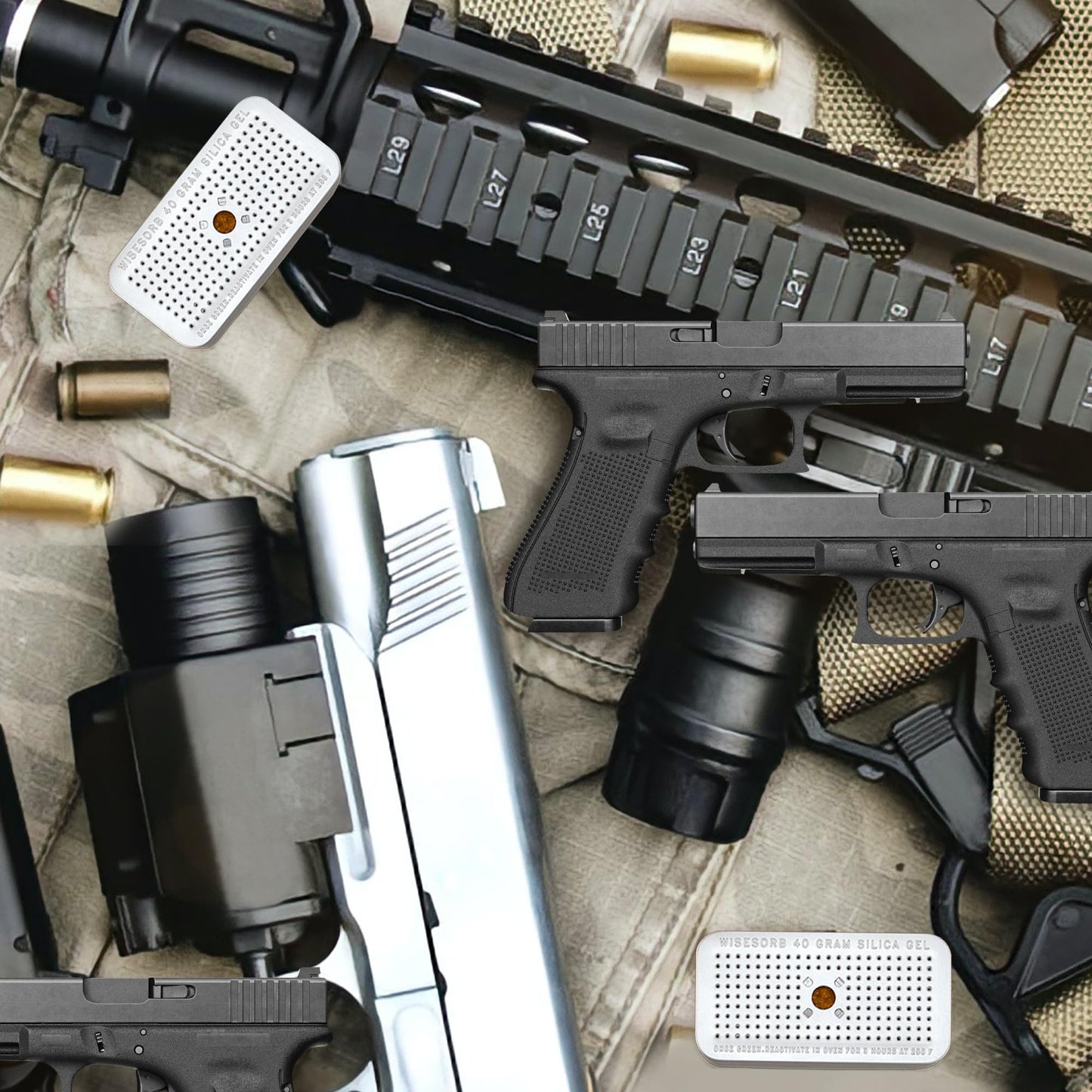 - 【Package Contents】: You will receive 5 packs of 40 gram indicating desiccant canisters. Each desiccant canister is individually packed in bags for easy storage. It is perfect for safeguarding guns, important documents, collectibles, books, jewelry, photo albums, shoes, camera lenses, expensive photography equipment, toys, leather clothing, ammunition, and photo equipment. Its versatile usage ensures the preservation and protection of a wide range of valuable items.