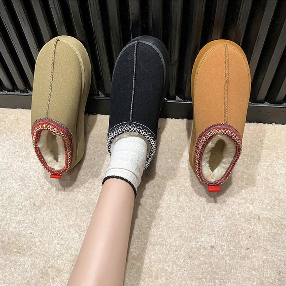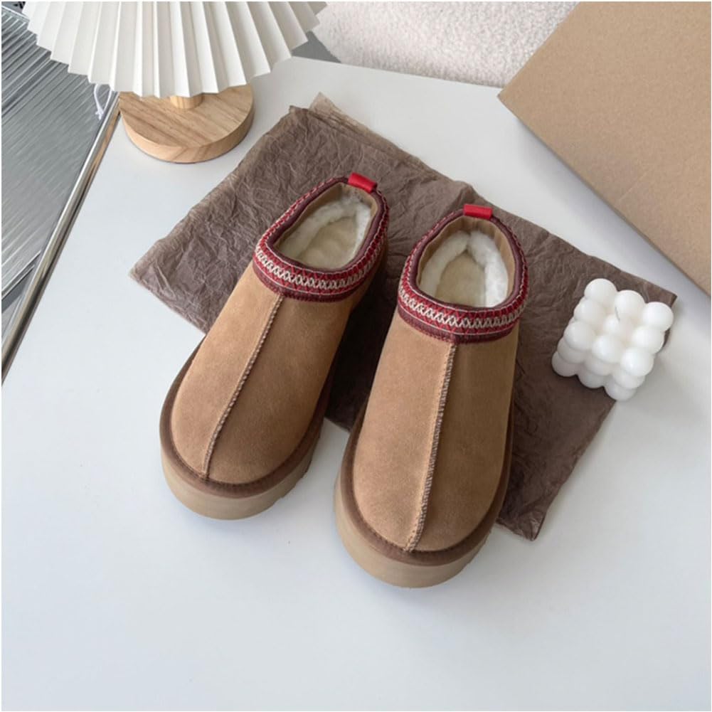Women's Slipper Thick-Soled Snow Boots Winter Short Ankle Suede Leather Snow Boots Fur Fleece Lined Slippers